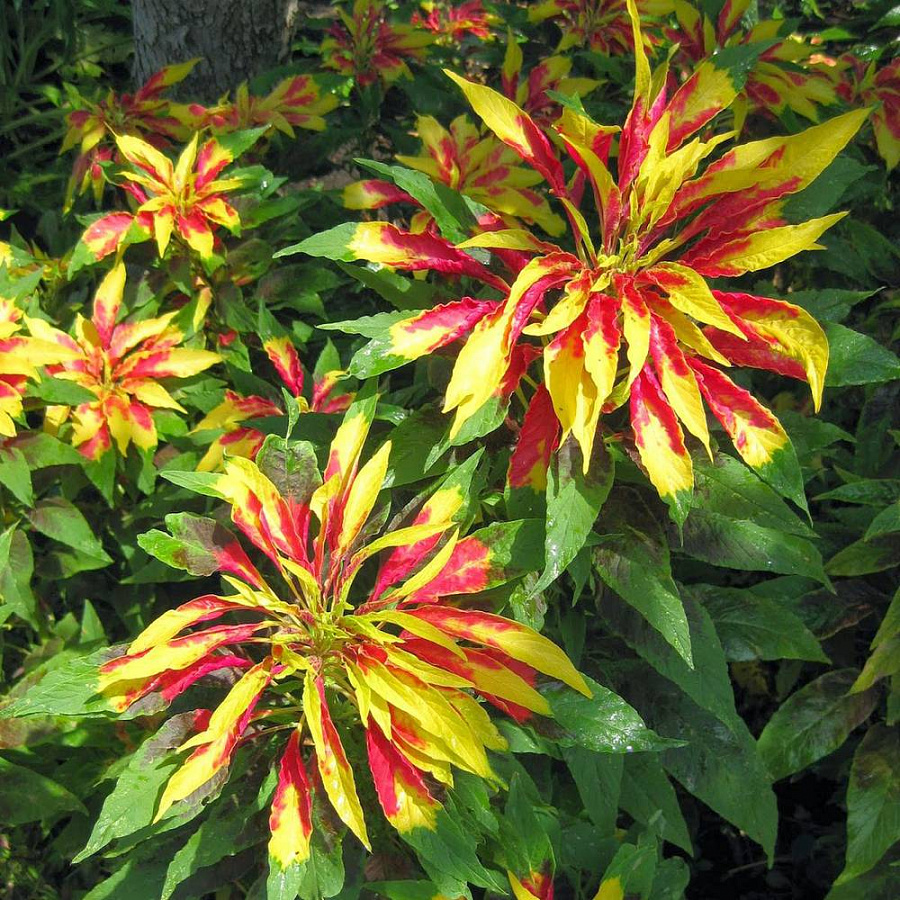 Этот сорт цветет всего два раза в году, но каждое цветение поражает своим разнообразием. Цветки амаранта трехцветного бразильского карнавала окрашены в зелено-желтые, красно-бордовые и розово-бордовые тона, создавая неповторимую палитру красок в вашем саду.