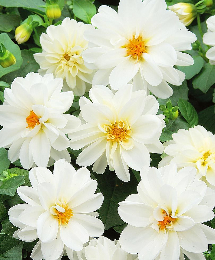 Эта георгина предпочитает солнечные места для посадки и подходит для любых типов почв. Она цветет в течение нескольких месяцев - с марта по июль, радуя вас своими нежными белыми цветами. Для ухода за растением рекомендуется регулярный полив и удобрения в период активного роста.