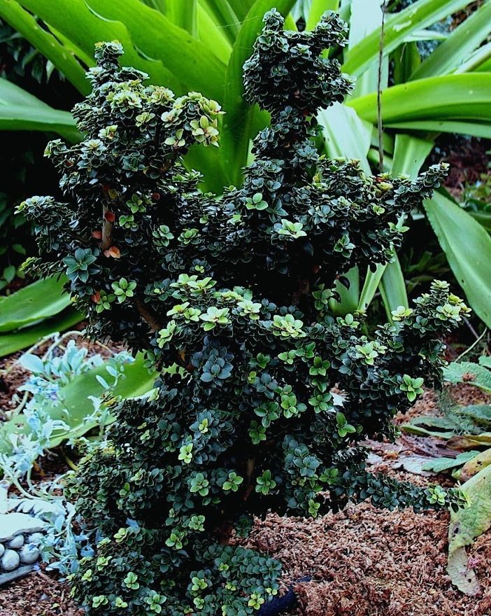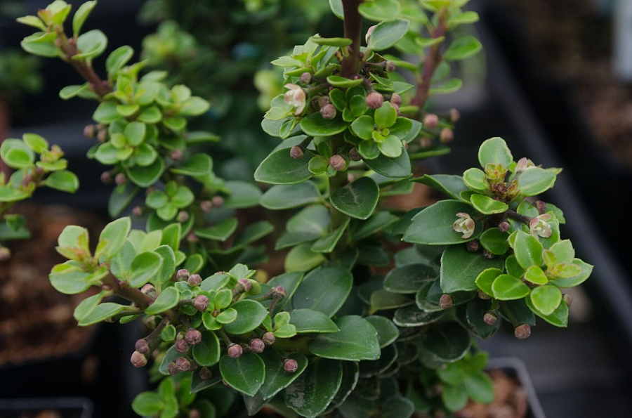 Саженцы Падуба японского остролистного Дварф Пагода (Dwarf Pagoda) – из-за небольшого размера относится к карликовым кустарникам. Ветви располагаются, густо образуя шаровидную крону. Растёт кустарник медленно, что позволяет применять его в любых композициях. Тёмно-зелёные листочки остаются на ветке на зимовку. В Осеннего период из маленьких белых цветочков появляются крошечные чёрные плоды. Максимальная высоты спустя 50 лет будет всего 90 сантиметров. Этот вид падуба не требователен, спокойно переносит загрязнённый городской воздух. Из-за скромных размеров можно выращивать дома, главное, чтобы место было прохладным.