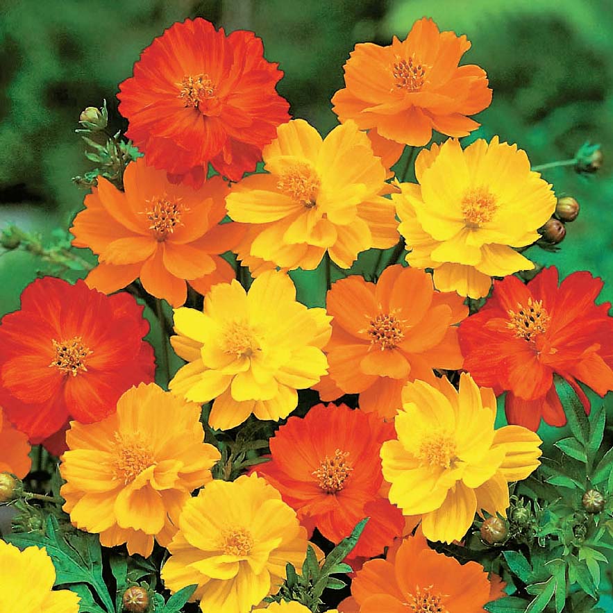 Космея карпет микс - это удивительное растение с яркими лимонно-желтыми, золотыми, оранжевыми и красными цветками, которые радуют глаз в течение нескольких месяцев в году. Его стебли достигают высоты до 30 см, а диаметр цветка может достигать 6 см. Листья космеи имеют интересную форму и придают растению особый шарм.