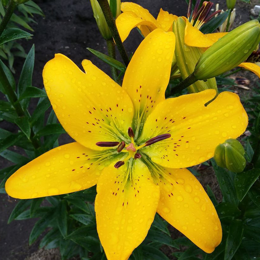 Луковицы лилии ЛА-гибрид Парамилло (Lilium LA-hybrids Paramillo) относятся к современным зимостойким сортам, которые прекрасно растут в регионах с разными погодными и климатическими условиями. Эти гибриды подходят как для выращивания в саду, так и для выгонки. В открытом грунте лилии данного сорта зацветают в июле. Желтые цветки имеют насыщенный оттенок, редкий крап ближе к основанию и коричневые пыльники. Диаметр цветков достигает 18-20 см. Лилии предпочитают солнечные, теплые места с небольшим затенением. Стебли вырастают в высоту до 125 см и сохраняют зеленый оттенок своей листвы даже после цветения.
