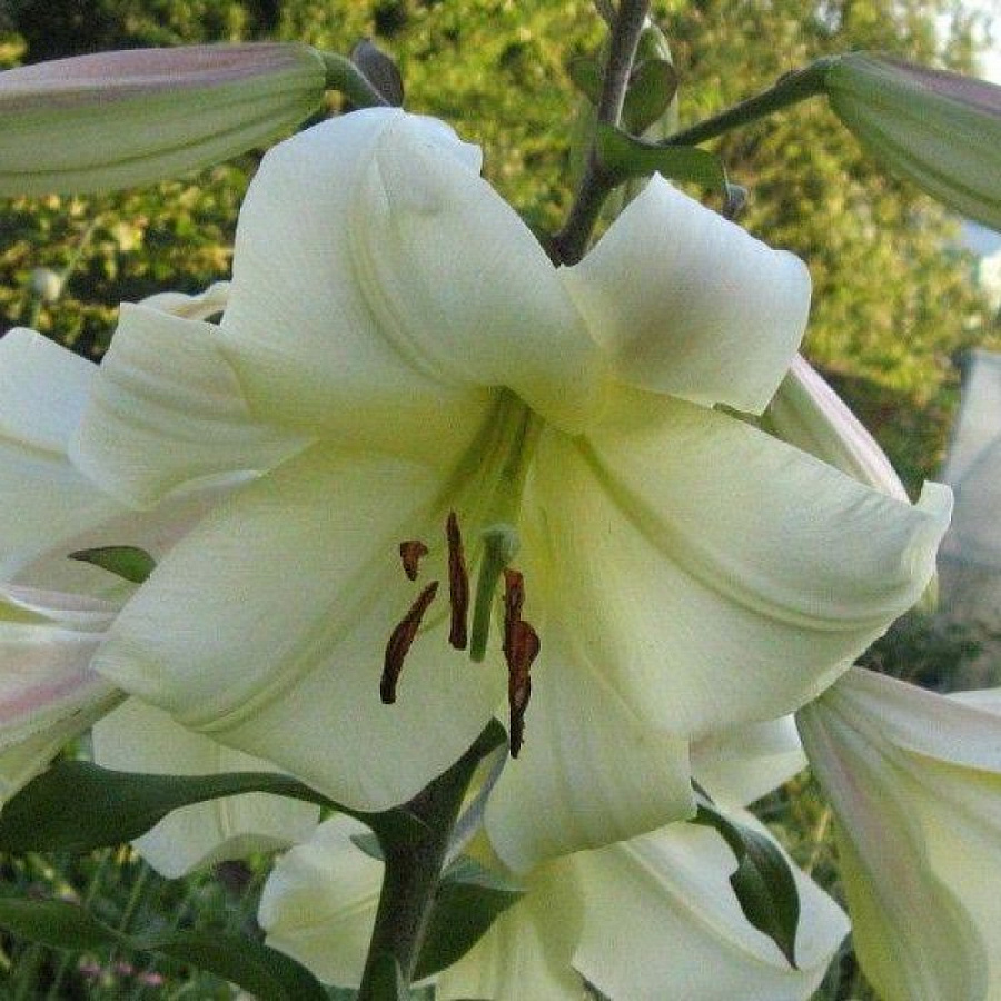 Лилия от-гибрид Элиси - это великолепное растение с кремово-белыми цветками, которые радуют глаз своей изысканной красотой. Высота этого растения может достигать до 100 см, что делает его прекрасным украшением любого сада или огорода. Листья лилии имеют зеленую окраску и интересную форму, что добавляет растению особый шарм.