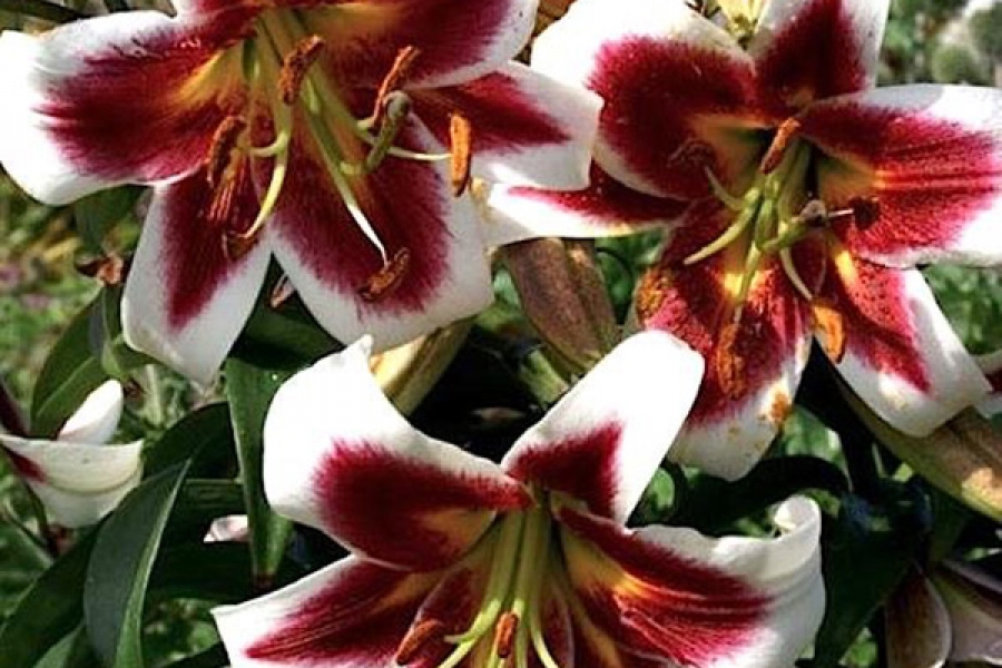 Лилия от-гибрид Роберт Грисбах - это великолепное растение с белыми цветками, украшенными бордовым центром и зеленцой у основания. Ее высота может достигать от 100 до 145 см, а размер цветка равен 20 см. Лилия отличается красивой формой листьев и яркой летней окраской. Это растение предпочитает солнечные и полутенистые места для посадки, а также дренированные богатые почвы.