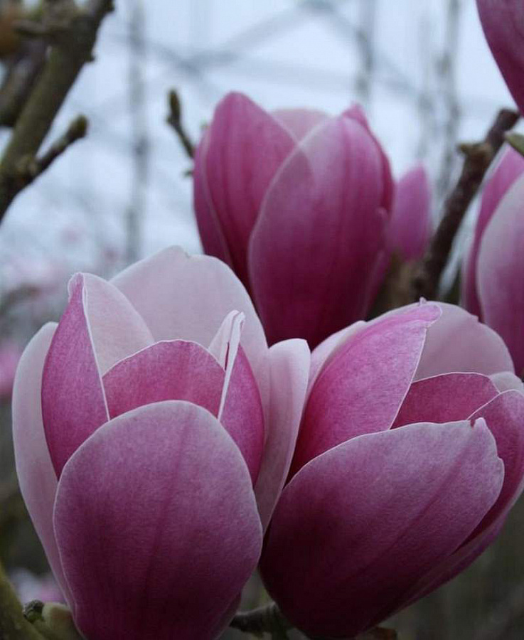 Саженцы Магнолии cуланжа Сатисфэкшн (Satisfaction) – красивый кустарник округлённой формы. Отличается медленным ростом. Листочки тёмно-зелёного цвета осыпаются осенью. Примечательно, что цветение может начаться как во время роста листьев, так и до этого периода. Обычно багрово-розовые соцветия в форме чашечки появляются в конце апреля. В это время магнолия очень ароматная. Куст растёт равномерно, через 10 лет его высота и ширина не превышает 2.5 метра. Предпочитает солнечную строну и не любит ветра. Морозы переносит хорошо, если прикрыть корни. Магнолия любит плодородную почву подкормку.