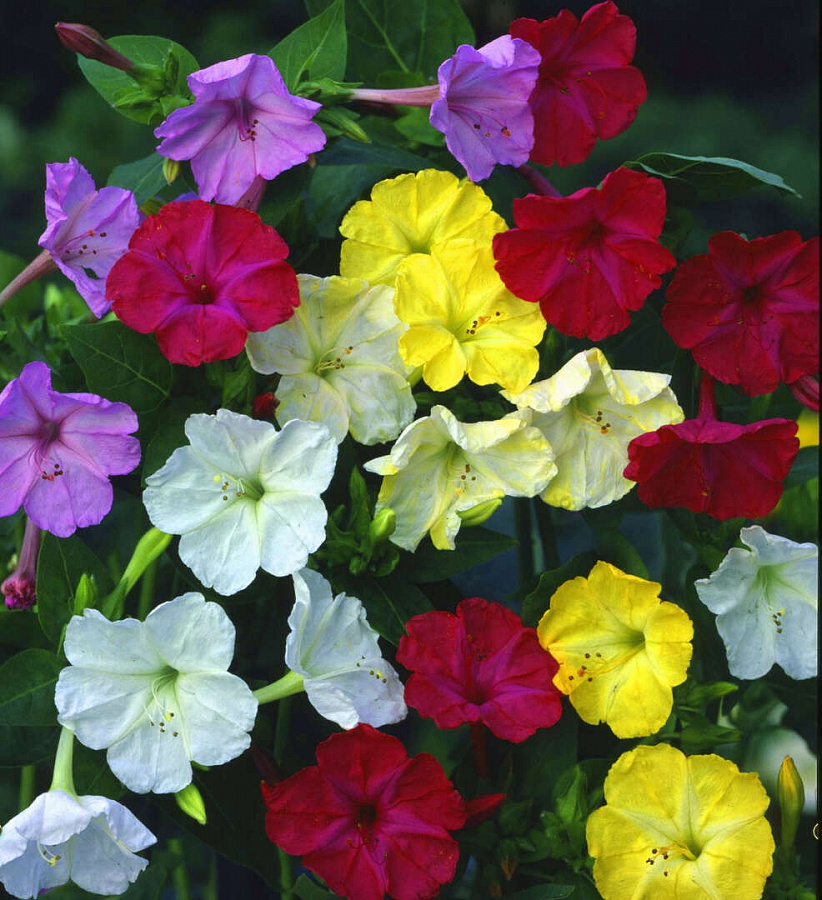 • белоснежные и прочие. Для посадки семян мирабилиса (Ночная красавица) следует подобрать солнечный участок глинистой почвы. Яркие цветы будут радовать садоводов с июня до начала осенних заморозков.