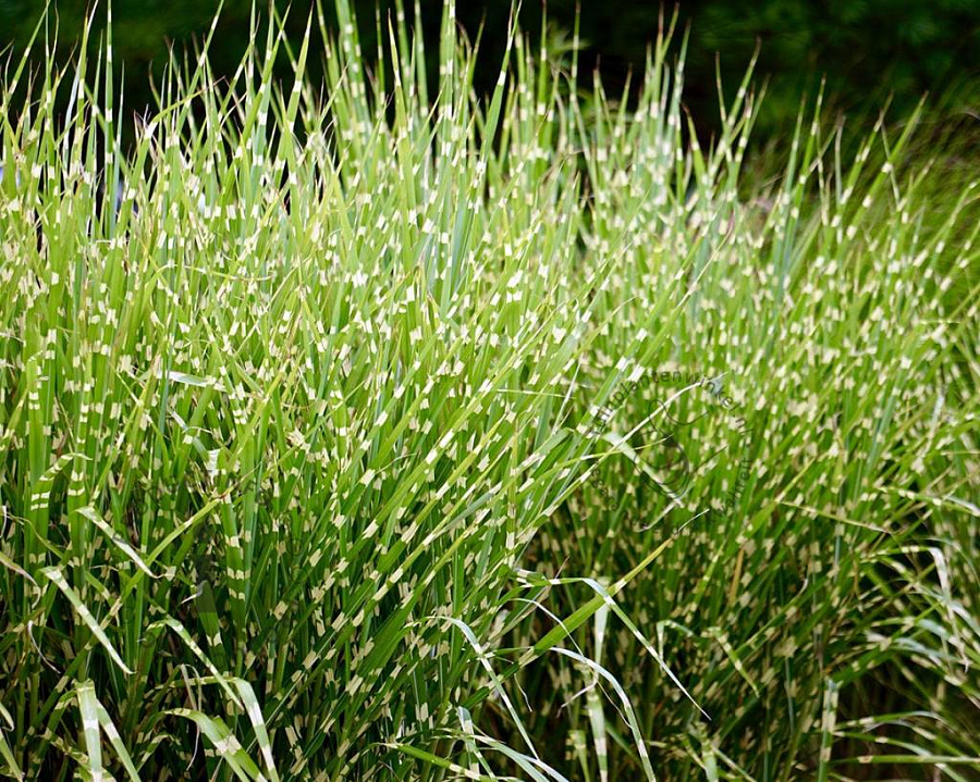 Рассада злака Зебринус (Zebrinus) эффектный кустистый рослый ( до двух метров) мискантус с крепкими стеблями, направленными вертикально. Листья у растения ярко зеленые с поперечными белыми полосами, длинные. Корневая система мощная, разветвленная, отлично удерживает злак прямостоячим. Мисканутсу Зебринус нужно много солнца для хорошего роста и развития. Цветение в виде метелок. Дает семена. Размножить можно делением куста весной, но в розетке должно быть более 5 побегов.